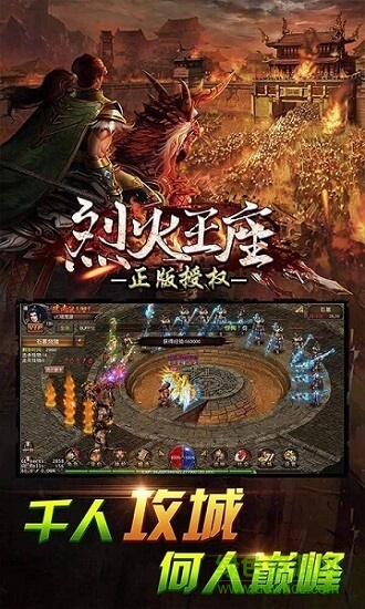 《烈火王座》PVP中有2大核心玩法:跨服对战、皇城争霸。在活动期间内,组织行会成员攻入沙城皇宫,并在活动结束时仍占领皇城的行会即可成为沙城之主!但这条霸主之路艰险重重,需要行会每一位兄弟出谋出力、恪尽职守才行。若非智勇团结之团队,若无生死支援之兄弟,攻得下城么、守得住城么?