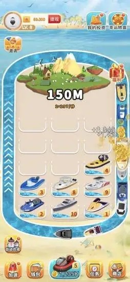 游艇大亨单机版是一款打造游艇经营赚钱为题材的模拟类单机游戏。游艇大亨红包版游戏画面卡通可爱,蓝色的背景下让玩家们放松了身心,简单的放置类玩法,解放了双手,随时随地都能玩!