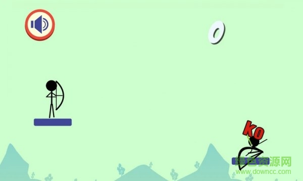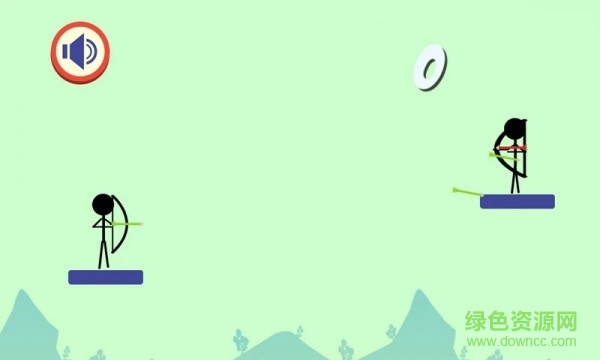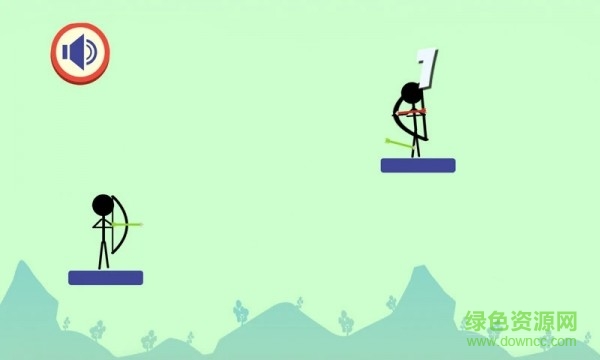 1、简单的游戏玩法,操作自己人物的弓箭,在没有辅助线的情况下快速的击败对手。