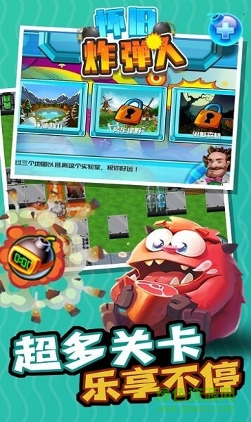 2、全新的炸弹冒险,将关卡内的怪兽全部炸翻吧,还有各种各样的道具可以使用。