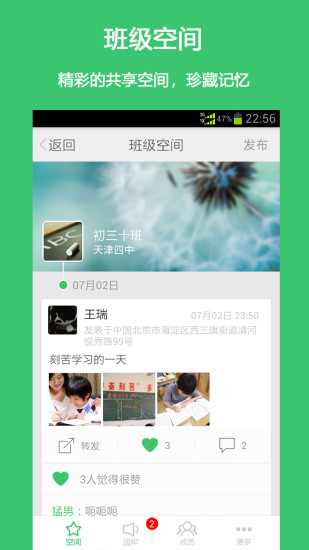 2.班级空间功能让班级照片随时传递,记录属于班级的成长历程。