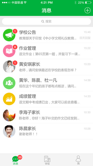 1.掌上家校:学校、班级、家长、学生、老师,家校互动“〇”距离!