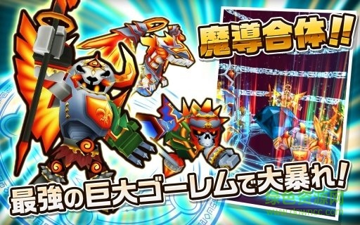 c、战斗时玩家不仅可以放出绚丽的必杀技,还可以控制怪物们进行“魔导合体”,在战斗过程中炼成一个更加巨大的怪兽,然后在限定时间内如摧枯拉朽一般将敌人捏成粉末。