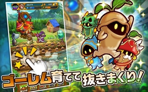 游戏中玩家可以通过选土、施肥、浇水、防鼹鼠,用类似园艺的方式来照料魔女的田地,收获充满个性的魔像,有时也会生出稀有的魔像喔!将收获的魔像与剑士或是魔导士的灵魂结合,就会变身为战斗魔像“土块战士”。玩家需要通过触碰滑动的方式来操纵专属魔像军团,在限制时间内压制所有散落在场地上的水晶。魔像将会以动画呈现的方式,不同的部件分散合体后超巨大化。排列组合之后,合体模式变化可多达 18 亿种。找出属于自己的最佳组合,扫荡周遭的敌人吧!