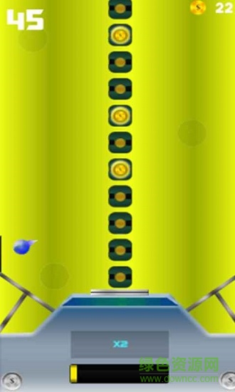在这款规则简单的小游戏中锻炼你的反应能力,屏幕中央会生成一个随机排布且运动的墙,玩家需要操控一个在屏幕中央跳跃的小球,通过点击屏幕两侧的空白区域来改变小球跳跃的方向,确保小球能够平安的从金币砖之间穿过,同时不要让小球离开屏幕,一旦撞到屏幕边缘,游戏也会结束。