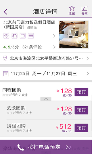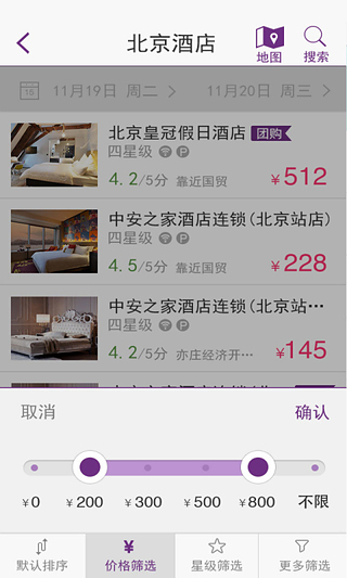 3.个性搜索:为您提供多种个性化的筛选方式,想找大床房,一点就搞定。