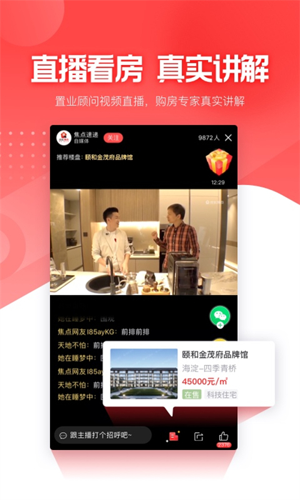 焦点好房官方版是一款安全靠谱的网上买房软件。推送了海量真实的房源信息,无论是买新房还是二手房都可以快速找到满意的房源!并且提供了房产直播以及装修咨询服务等功能,需要买房的朋友可以来安装使用!