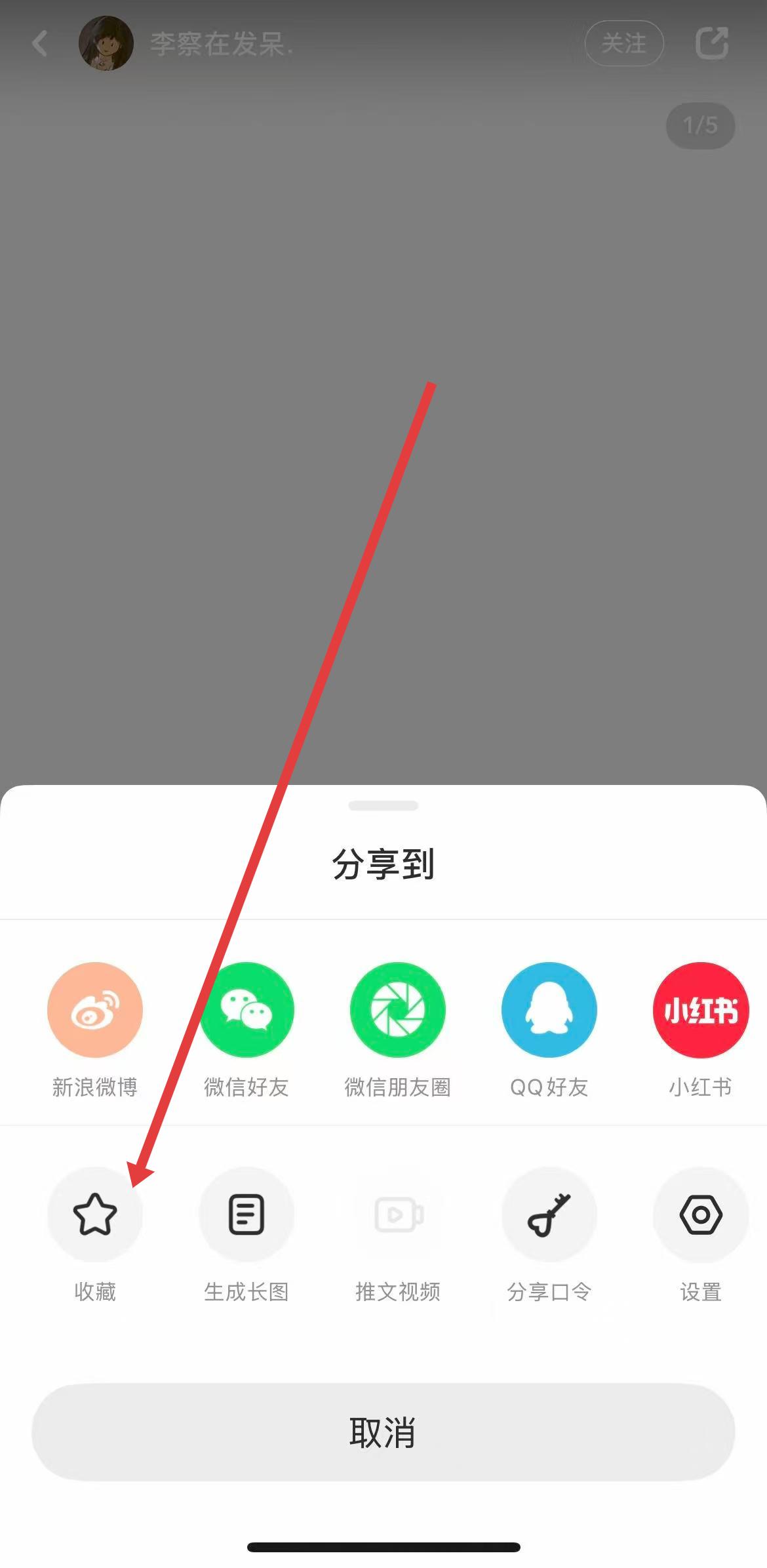 3、点击右上角图标后,在弹出的分享菜单中,点击收藏图标,即可完成收藏操作。