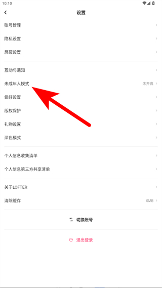 3、在设置页面点击未成年人模式,进入未成年人模式页面。