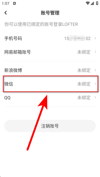4、在账号管理页面,找到微信选项并点击,按照提示完成微信绑定操作。