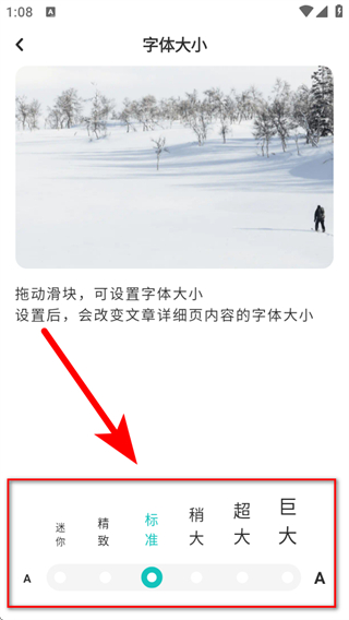 4、在字体大小设置页面中,拖动滑块选择字体大小选项,即可完成老福特的字体大小调整。