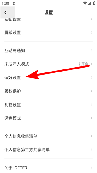 2、在设置页面中找到偏好设置选项并点击,进入偏好设置页面。