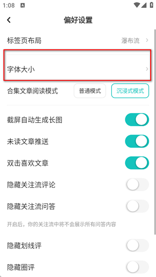 3、在偏好设置页面中找到字体大小选项并点击,进入字体大小设置页面。