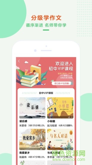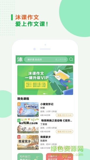 沐课作文安卓手机版提供了全面的课程学习资源,从小学到初中的知识内容全面覆盖,素材众多,题材丰富,可以查看优秀的写作范文,有详细的技巧讲解,欢迎喜爱的朋友下载使用!