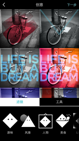 2.新增15秒视频拍摄和分享功能并提供电影级滤镜效果: 颜色增强,宝丽莱,光晕,金色,柔光,冷调,Lomo,复古,鱼眼,万花筒,街灯…