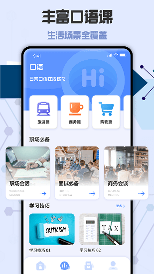 4、进入练习版块,查看各种实用口语内容,快速练习口语,提高口语水平