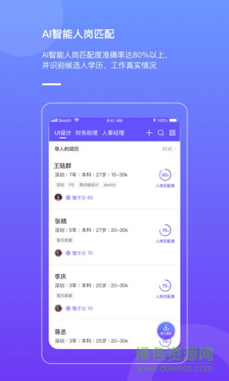 专为hr人员设计的自动化流程,人岗匹配通过大数据计算出人才与岗位的匹配度,同时也可以查看候选人的学历学位认证以及工作经历的证明情况等等。