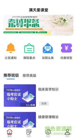 满天星课堂app课堂是一款专注于健康管理知识培训的应用。提供了丰富的健康学课程内容,学员们可以借助于这个平台在线自主学习健康学专业方面的知识。欢迎体验。