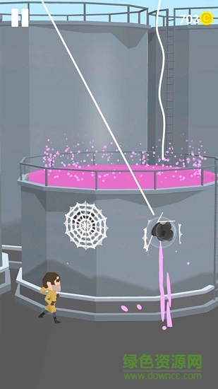 1、卡通3D游戏画面方式,独特的蜘蛛丝的拯救人们的玩法。