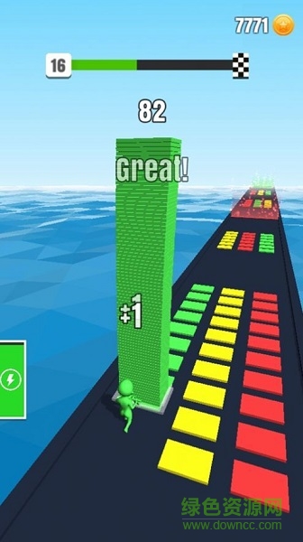 如果本次需要你收集绿色的砖块,那么你在闯关收集的时候就不能收集红色的
