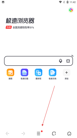 1、打开360极速浏览器,点击底部的三条横线菜单按钮。