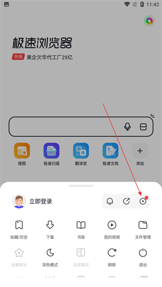 2、在弹出的菜单中,点击右上角的设置图标。