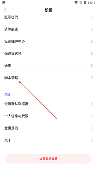 3、在设置页面中找到脚本管理选项,点击进入脚本管理界面。