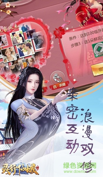 2)、情缘副本邂逅红颜,浪漫约会亲密互动,提高亲密值增加默契,可在三界自由冒险,高手跨服竞技对决。