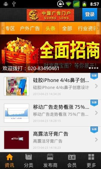 中国广告门户是中国广告行业移动手机客户端,广告设备产品网络交易平台,中国广告门户提供供求信息发布平台,免费展示最新最全广告行业供求信息,寻找商机就到中国广告门户。