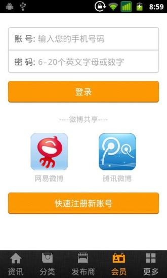 4.会员注册:一键收藏,一键微博,短信分享,一键免费咨询功能。