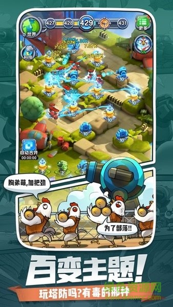 无需大量的手动操作,你只需要简单的合成升级你的炮塔就可以体验爽快刺激的塔防战斗;