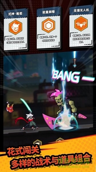 1、逐渐递增的游戏难度,华丽的特效将所有敌人打败。