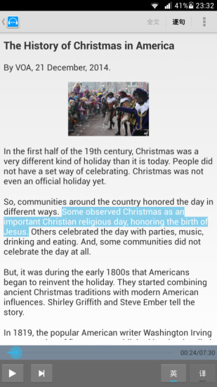 4.独具特色的全文模式,句子高亮跟踪显示,英文中文可手动关闭打开,自动记住您的最后学习位置