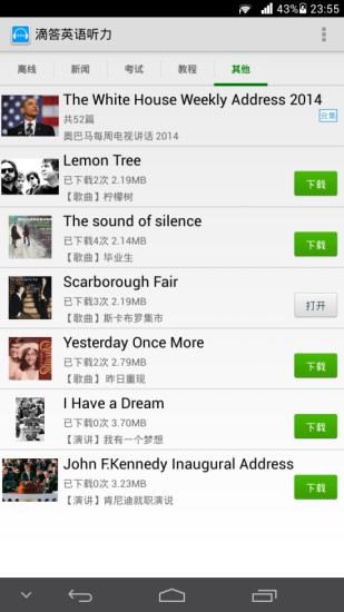 2.VOA,四六级,新概念,名人演讲,英文歌曲等海量听力资源免费下载,每天持续更新
