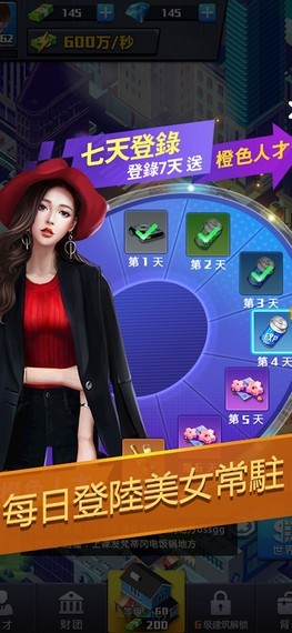 1、开服七天每天登陆都有福利送,美女秘书、豪车豪宅,让你享受富豪的人生。