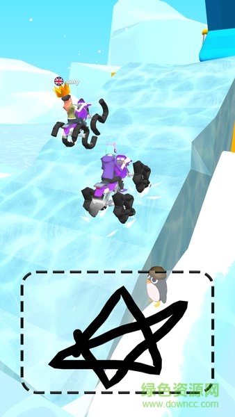 1、趣味涂鸦玩法的竞技挑战类游戏,在这个独特的竞速玩法中你将能给自己的车子绘制不同形状的轮胎;
