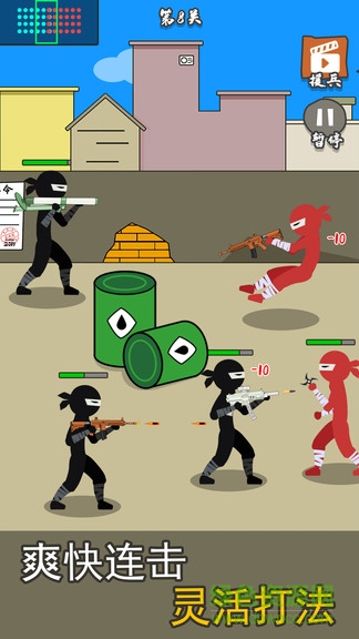 作为一名英雄战士,玩家需要开动脑筋,给自己士兵配上不同的武器和小弟!在战场中,你将被派往不同的地点执行艰巨的任务,你将面临不同的战场挑战,持有不同武器的敌人,去摧毁敌人!