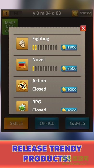 游戏工作室大亨4,全新像素风格模拟经营手游,游戏中玩家将成为一名游戏公司的老板,在不同的时刻下需要去准备不同的发展策略去扩大自己的商业范围,制作更多优质的游戏作品,游戏中包含投资、招聘等几乎全部仿真玩法,感兴趣的玩家可以下载体验一下哦!