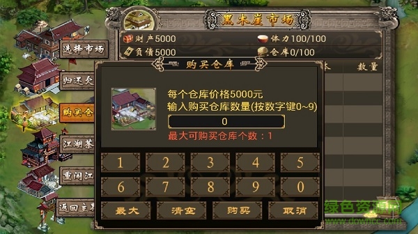 仓库限制着购买市场物品的总数,可进行扩增,一个位置5000。