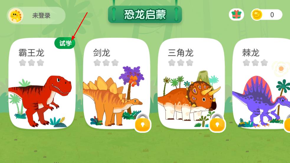 2、进入应用主界面后,找到标有试学标识的霸王龙课程选项,点击该选项进入课程页面。