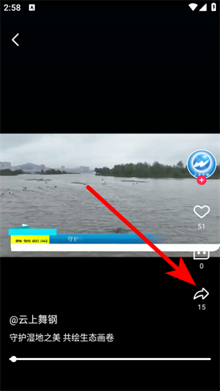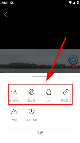 3、在视频播放的页面,点击右下角分享图标,弹出分享选项框。