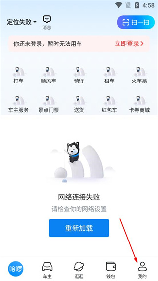 1、打开哈啰出行APP,点击屏幕右下角我的选项,进入个人中心页面。