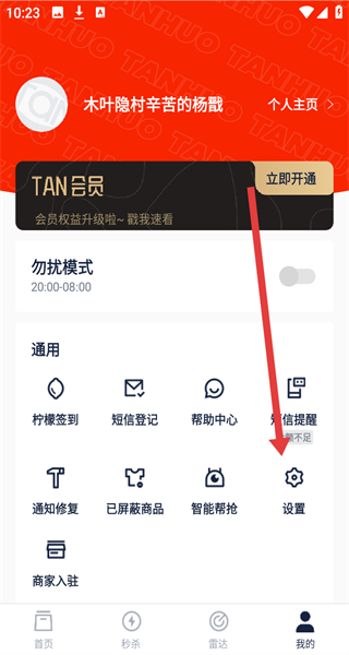 1、在APP个人中心页面点击“设置”,进入设置页面。