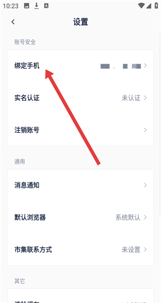 2、设置页面点击“绑定手机”,进入更换手机页面。