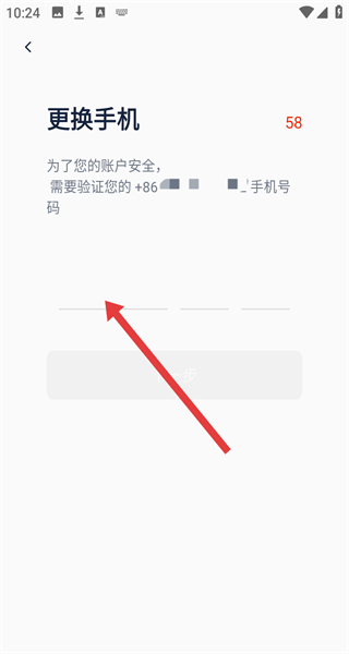 3、更换手机页面完成原手机号验证后,进入输入新号码页面。