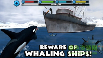 终极虎鲸模拟器是一款模拟动物手游,大海十分的宽广,可以在里面自由的探索!玩家在游戏中,需要保持你的健康,饥饿,氧气和能量,如果你打算在北冰洋冰冷的海水中生存!使用你的迅速的速度和强大的撕咬追捕和打击致命的鲨鱼,鲸鱼,和海豚!结合您的速度和撕咬攻击给敌人致命一击!