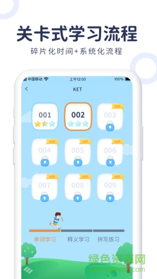 专注于高效背单词的英语学习工具类产品,主要针对是6~12岁人群,教育内容针