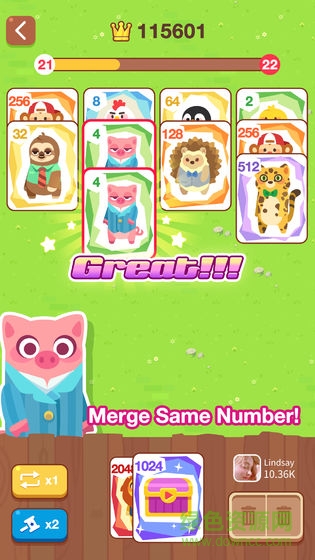 动物2048是一款单人纸牌游戏。每个纸牌都对应不同的数字和动物,你需要通过叠加相同的纸牌来让数字相加达到2048使纸牌消除,游戏的目的就是通过正确的方法让所有纸牌消除。