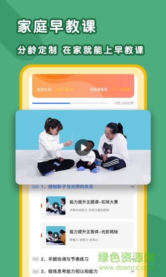 2亿家庭的最佳选择,0—6岁宝宝必备的家庭早教软件。为了解决隔代抚养的弊端,将早教延伸至每个家庭,提高家长的高效陪伴,让每一位宝宝在家玩出质量!我们用10年线下早教经验推出1500多个比电子产品更吸引孩子的早教游戏,为所有的宝宝量身定制启蒙方案,让每一位奋斗在人生路上的宝爸宝妈们不再为孩子教育上的缺失而担忧!