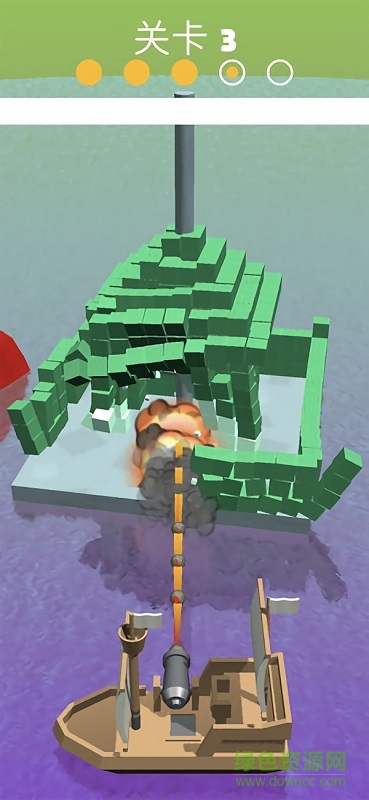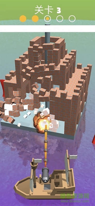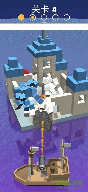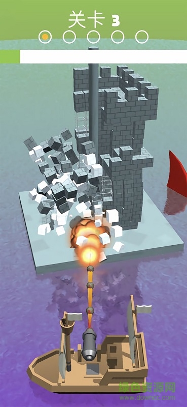 c、点击屏幕任意位置开始射击,长按小船就能一直发射炮弹,直到将城堡摧毁为止。